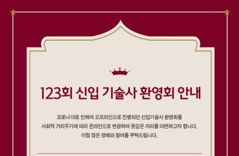 123회 신입기술사 온라인 환영회 참석 신청(16일 수,18시마감)