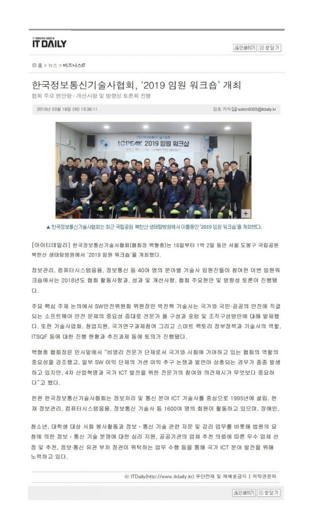 2019년 3월 18일 아이티데일리 “2019 임원워크숍 개최” 보도자료By 한국정보공학기술사회2019년 3월 18일Leave a comment기사 링크 :http://www.itdaily.kr/news/articleView.html?idxno=93643