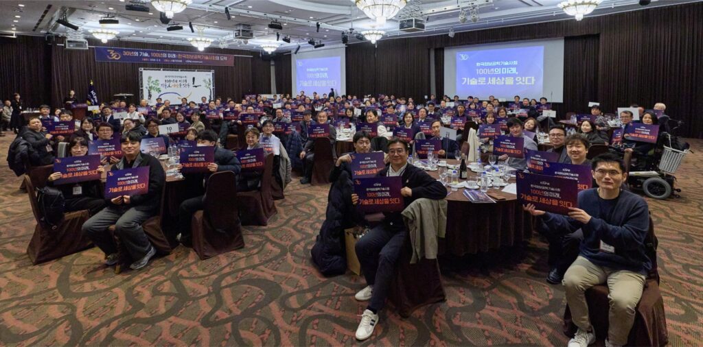 2부 ‘30주년 기념식’에서는 지난 30년간 국가 정보통신 기술 발전과 사회적 가치 실현에 기여해 온 기술사회의 발자취를 회고했습니다. 특히 인공지능 전환(AX) 시대를 맞아 ‘현장을 검증하고 미래를 실행하는 기술사 공동체’로서의 새로운 비전을 선포했으며, 현장에는 한국기술사회 김상귀 회장 등 ICT 유관 기관장들이 참석했으며, 황정아 국회의원을 비롯해 ICT 산업 및 언론계 주요 인사들이 영상 축사를 통해 기술사회의 새로운 도약을 응원해주셨습니다.