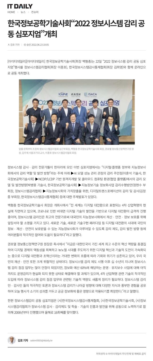 안녕하세요, 한국정보공학기술사회 사무국입니다. 유관기관인 한국정보시스템감사통제협회에서 아래와 같이 제11회 Asia Privacy Bridge Forum이 10월 13일(목) 개최합니다. 우리나라를 포함하여 아시아 주요 국가의 정부/민간/학계 프라이버시 전문가들이 “Data Privacy Policy for Revitalizing the Digital Era“를 주제로 포스트 COVID-19 시대의 아시아 주요 국가의 프라이버시 정책과 국제협력 방안을 살펴보고 앞으로 나아갈 방향을 논의하오니, Asia Privacy Bridge Forum을 통해 포스트 COVID-19…