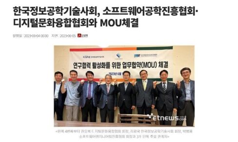 6월52023 2023년 6월 4일 전자신문 “SW공학진흥협회, 디지털문화융합협회와 MOU체결” 보도자료By 한국정보공학기술사회2023년 6월 5일Leave a comment Details