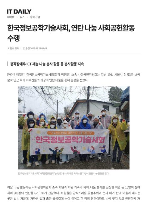 3월212022 2022년 3월 21일 아이티데일리 “한국정보공학기술사회, 연탄나눔 사회공헌활동 수행” 보도자료By 한국정보공학기술사회2022년 3월 21일Leave a comment Details