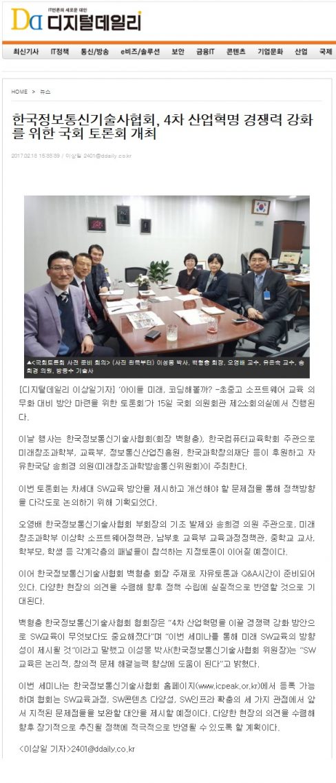 2월142017 2017년 2월 14일 아이티데일리 “초중고 SW교육 의무화 대비 위한 국회 토론회 열려” 보도자료By 한국정보공학기술사회2017년 2월 14일Leave a comment Details