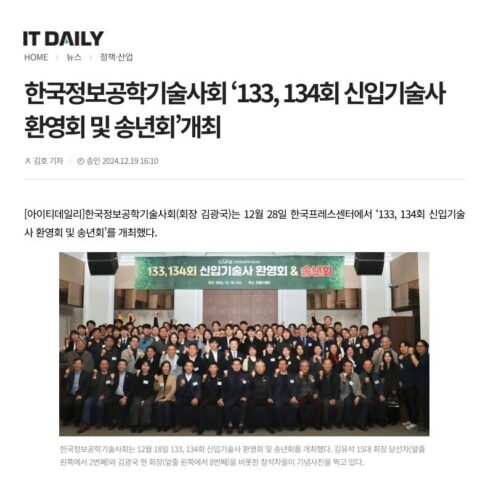 12월192024 2024년 12월 19일 아이티데일리 “한국정보공학기술사회, 133, 134회 신입기술사 환영회 및 송년회 개최” 보도자료By 한국정보공학기술사회2024년 12월 19일Leave a comment Details